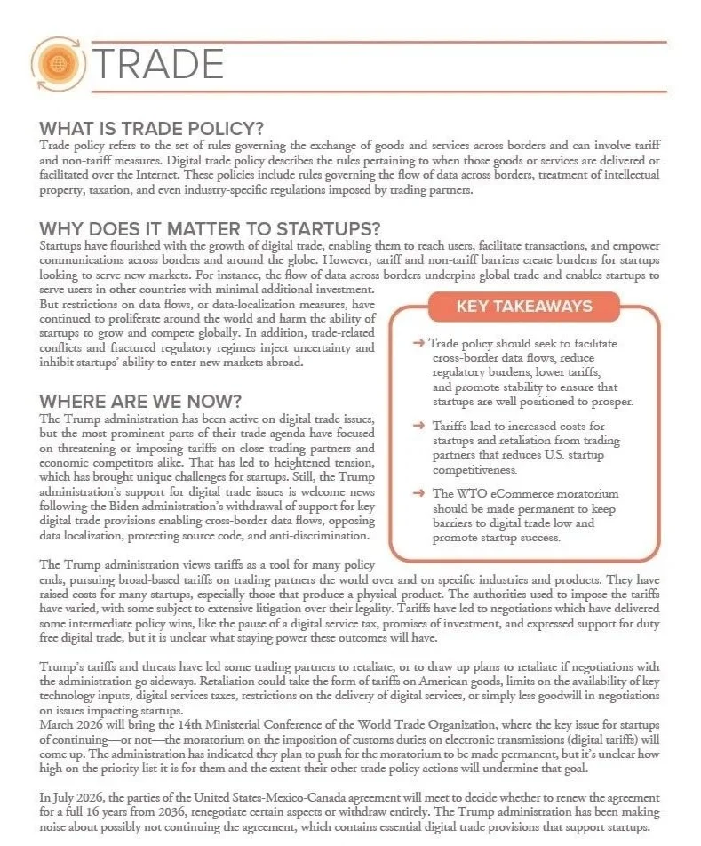 A look at how punitive trade policy that focuses on the imposition of new tariffs undermines goodwill with trading partners, invites retaliatory trade barriers, and threatens the vitality of digital trade policies relied upon by startups.